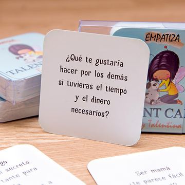 Las Talent Cards son juegos de tarjetas que generan espacios de comunicación en la familia. Están pensados para conversar adultos y niños y ayudar a: